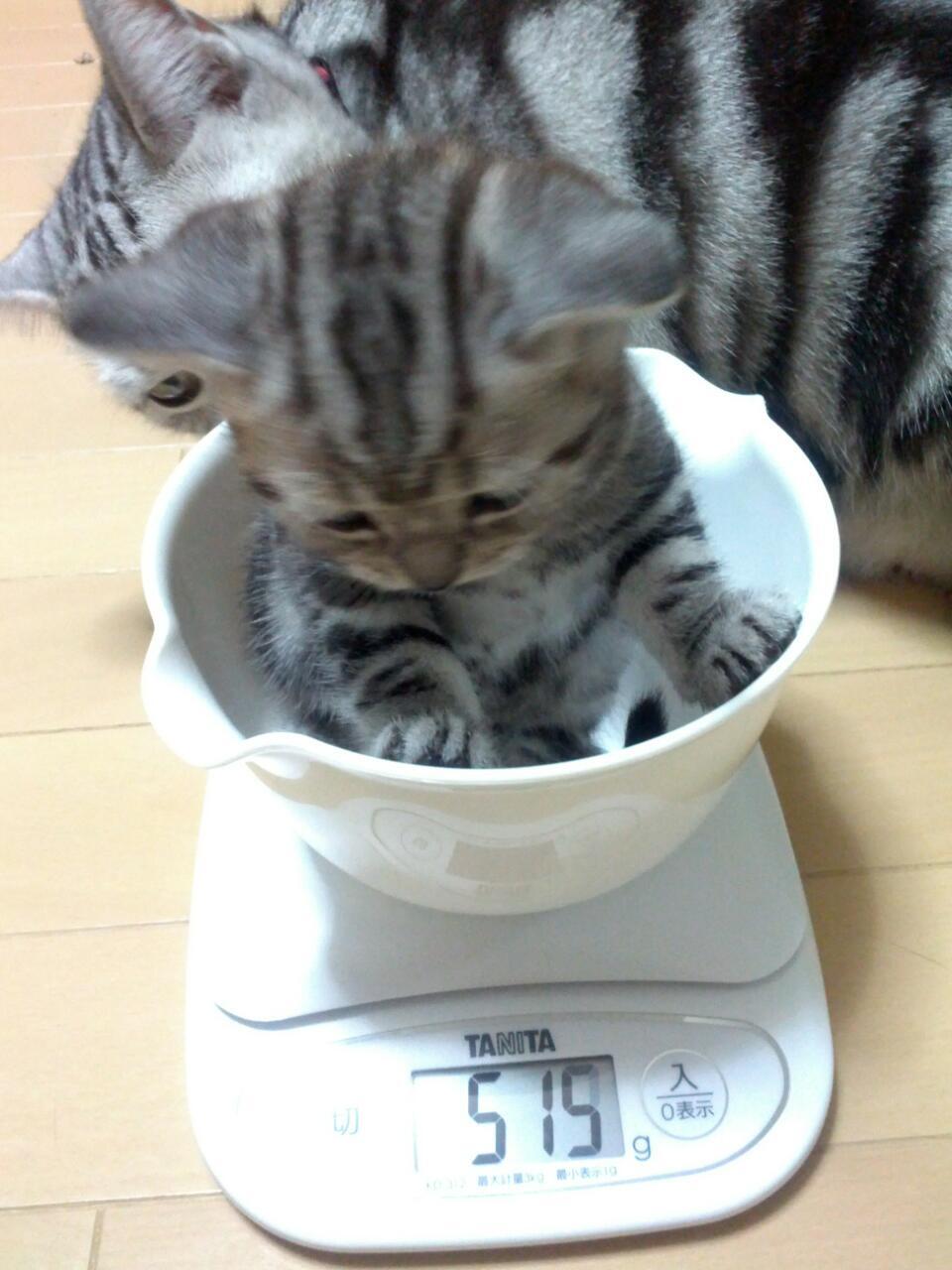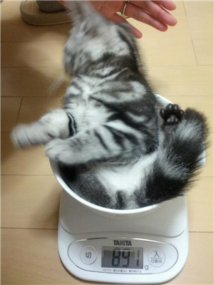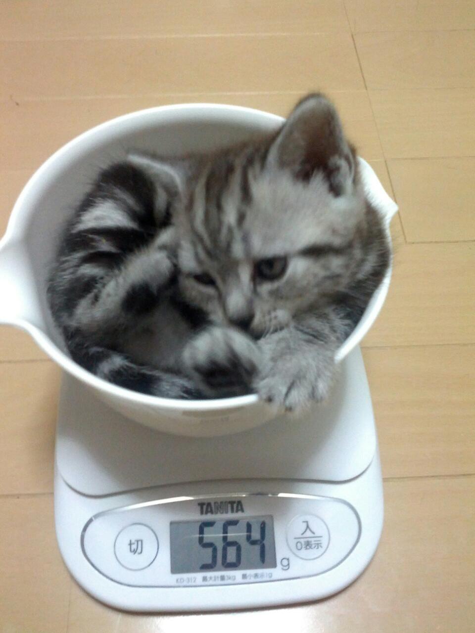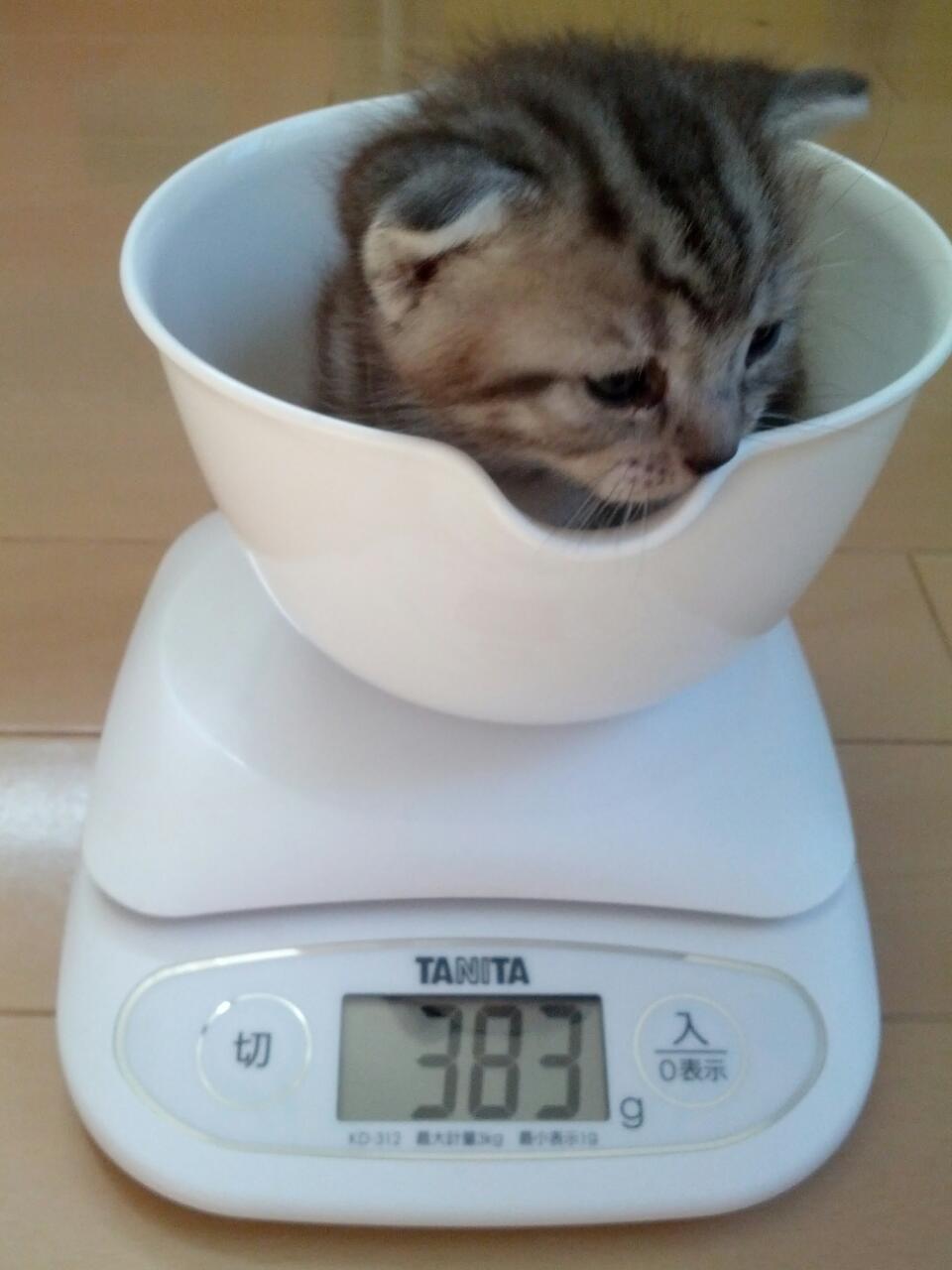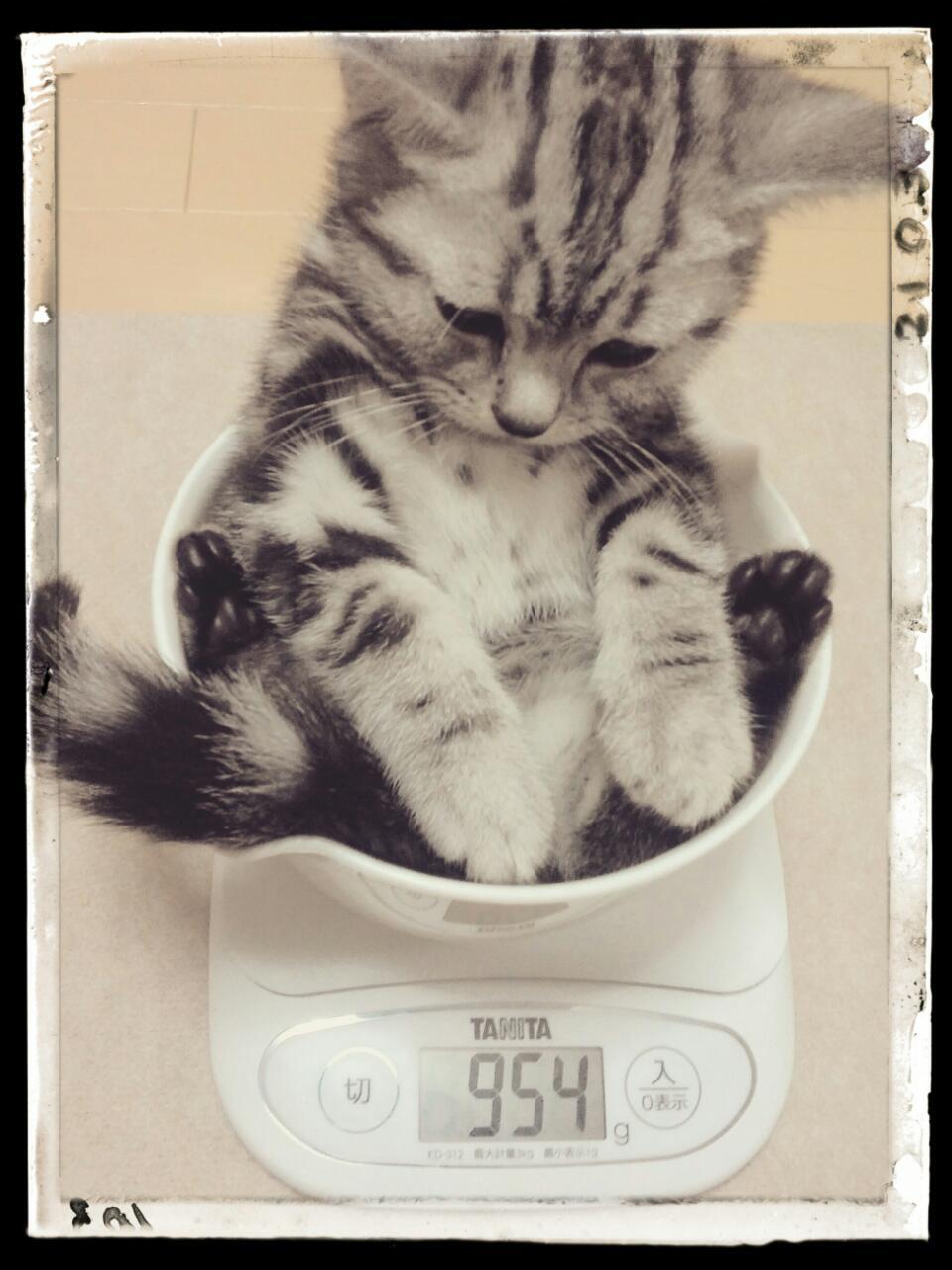 久々に小にゃんこの体重測定できました。954グラムありました。次回は1キロ超かな?