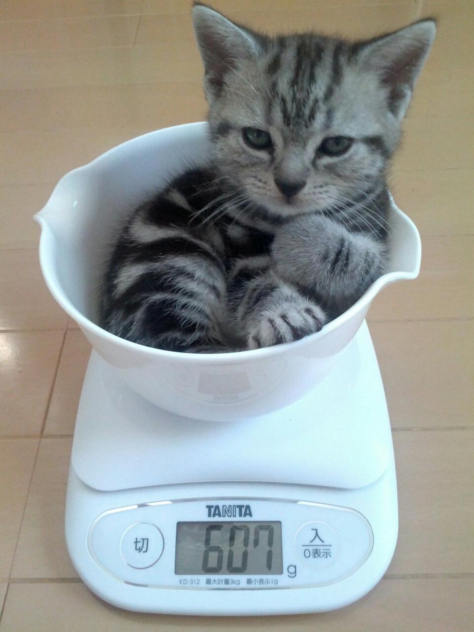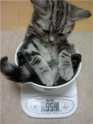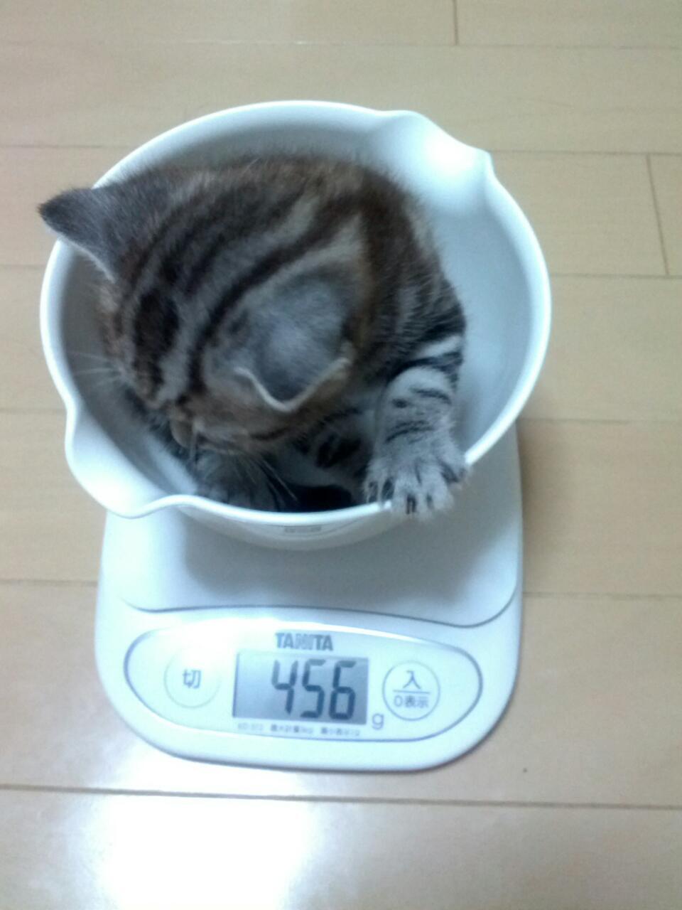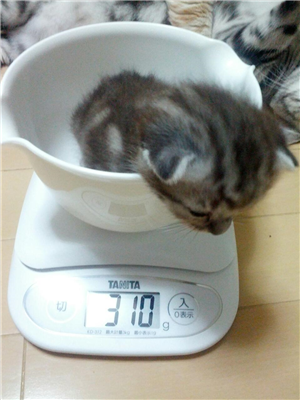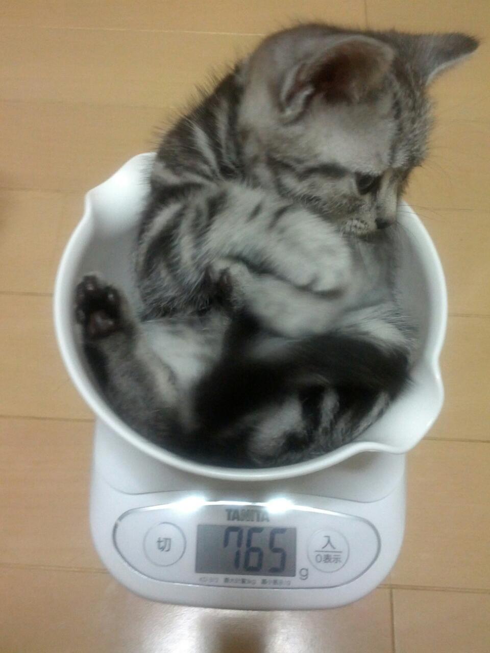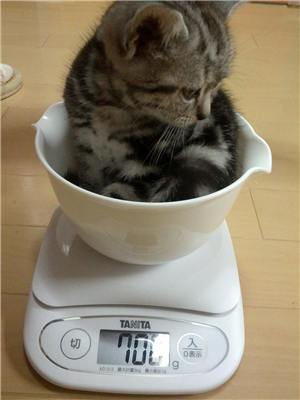久々に小にゃんこの体重測定できました。954グラムありました。次回は1キロ超かな?